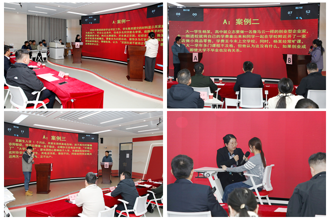 大赛设置“案例分析”“谈心谈话”两大核心竞技环节,精准考察辅导员职业核心能力。在“案例分析”环节,选手通过“AB角随机组合”分组,赛前10分钟抽题备战,比赛中先由A队作答、B队提问,再互换角色,作答与提问分别占比80%和20%的评分规则,全方位考验选手理论应用与问题研判能力。参赛辅导员凭借扎实功底拆解学生工作难题,提出切实方案,提问环节更尽显“真经验”与“真智慧”。随后的“谈心谈话”环节模拟真实育人场景,5分钟限时内,辅导员面对模拟学生的诉求与困惑,以耐心倾听、专业疏导搭建沟通桥梁,既展现了对学生成长规律的深刻把握,也彰显了临场应变的育人技巧。
