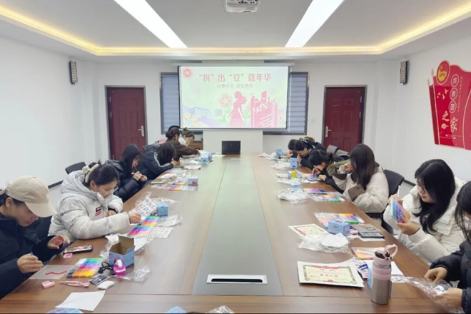 在学校团委举办的“‘拼’出‘豆’蔻年华”拼豆手工活动现场,色彩缤纷的拼豆材料、多样创意的图案吸引同学们踊跃参与。一颗颗小巧拼豆在同学们手中拼接成挂件、徽章、卡通形象等精美作品,既展现了青春创意,也收获了动手乐趣与专属成就感。现场欢声笑语不断,洋溢着轻松愉悦、温暖美好的节日氛围。