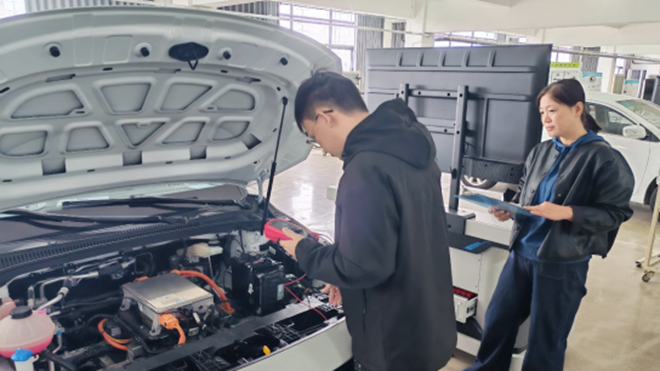 结业考核内容,分为理论和实操两部分。理论部分聚焦新能源汽车领域核心知识,涵盖动力电池管理、电机控制、整车电控等关键模块,全面检验学生对专业基础理论的掌握深度;实操部分则围绕产业真实需求设计任务,以“新能源汽车驱动系统故障诊断”、“发动机点火模块供电故障排查”、“汽车制动方向抖动问题解决”为三大核心场景,通过模拟企业车间工作情境,重点考评学生工具规范使用、故障逻辑分析、问题闭环解决的综合能力,体现以职业能力为导向的育人理念。