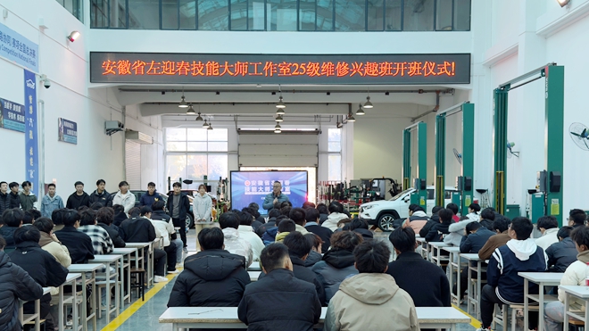 为点燃2025级新生对汽车维修专业的学习热情,提升实践操作能力,发掘后备人才,11月19日上午,安徽省左迎春技能大师工作室举办了2025级汽车维修兴趣班开班仪式。本届兴趣班吸引了来自全校各专业的130余名新生热情参与,现场气氛热烈。