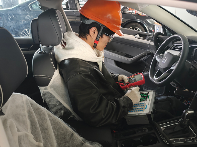 本次汽车故障检修校赛立足岗位实际,以企业真实维修场景为蓝本,科学设置竞赛内容与流程。比赛分为理论考核与实操竞技两个环节,全面考察学生的专业素养与实践能力。理论考核环节通过线上虚拟仿真平台答题,内容涵盖新能源汽车结构原理、故障诊断方法、维修安全规范等核心知识模块,重点检验学生对专业基础理论和行业技术标准的掌握程度;实操竞技环节则聚焦真实车辆故障案例,要求参赛选手在规定时间内完成故障排查、工具规范使用、维修方案制定与实施等实战任务,重点考评选手的故障诊断思维、动手操作能力、团队协作效率及安全防护意识。
