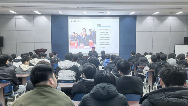 本次讲座以“匠心筑梦 青春挺膺”为主题。姚金健代表结合自身从一名普通技工成长为全国人大代表、劳动模范的奋斗经历,生动诠释了新时代工匠精神的深刻内涵。他分享了在技术攻关中面对失败、坚持改进、最终突破的实践历程,强调了“执着专注、精益求精、一丝不苟、追求卓越”的职业态度。同时,他还通过《哪吒2》创作团队精雕细琢、大国工匠徐立平、许振超等先进事迹,以及世界技能大赛冠军鲁静怡等青年榜样故事,深刻阐述了工匠精神在不同领域的时代价值。