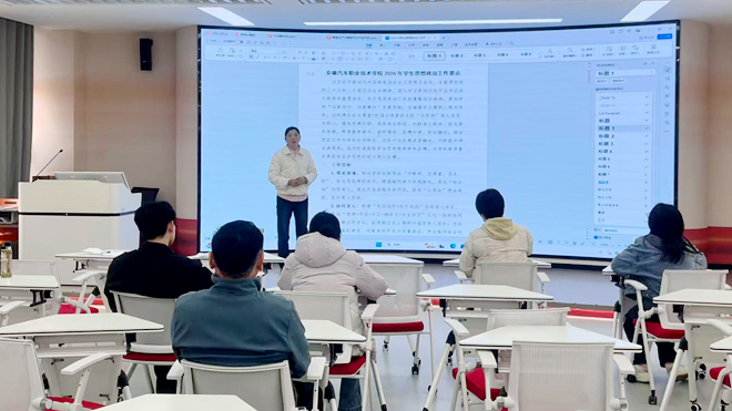 会议还就本学期党的创新理论融入思政教学开展专题研讨,确定“新质生产力赋能汽车产业升级”“‘十五五’开局与职业教育高质量发展”“教育科技人才一体化推进筑牢汽车强国青年担当”等为本学期重点课题,推动党的创新理论与汽车专业教学深度融合、同向发力,切实把理论宣讲、价值引领贯穿课堂教学全过程,助力培养兼具政治素养与专业本领的高素质汽车技能人才。