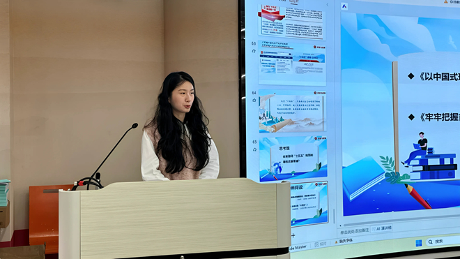 在研讨环节,思政教师姜曼首先进行了说课展示,详细阐述了如何将“十四五”规划的精神实质与战略部署有机融入课堂教学实践。随后,思政教师陈安琪、李根、龚丽分别从不同视角对说课内容进行了点评与交流。