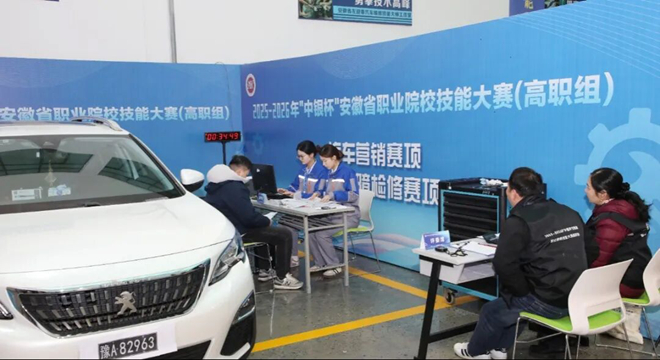 1月29日至31日,由安徽省教育厅、省工信厅、省人社厅、省残联主办,安徽汽车职业技术学院承办的2025-2026年“中银杯”安徽省职业院校技能大赛(高职组)汽车营销赛项在我校紫云校区举办,来自全省29所高职院校的54支队伍108名参赛选手同台竞技。