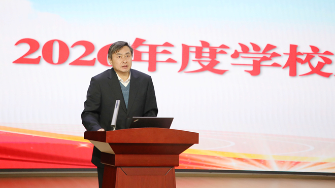 彭桂贞代表学校领导班子向大会作题为《向新而行 向高攀升 奋力开创学校发展新局面》的工作报告,全面总结了2025年工作成效和“十四五”主要成就,指出了当前存在的主要问题,部署了2026年重点工作任务,为学校“十五五”开局之年的改革发展指明了方向。