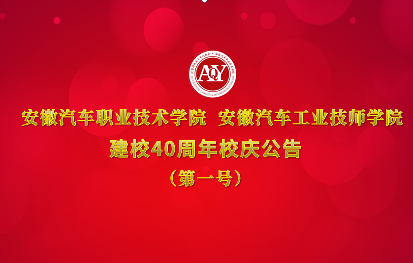 安徽汽车职业技术学院(安徽汽车工业技师学院)建校40周年校庆公告 (第一号)