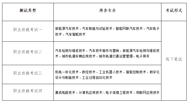 应往届中职毕业生根据所报第一专业参加职业技能考试,主要考核考生综合专业能力和岗位技能、通用技术等,主要包括专业能力测试(以考核专业知识为主)和技术技能测试(以考核操作能力为主)两个模块。测试方式为现场笔试,总分300分,测试时间90分钟。具体内容详见我校官网公布的《安徽汽车职业技术学院 2026年分类考试招生职业技能考试纲要》。
