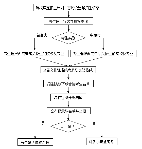 文化素质测试合格者,普通高中毕业考生参加招生院校的职业适应性测试,中职毕业考生参加招生院校的职业技能测试。测试的要求见各招生院校招生章程。