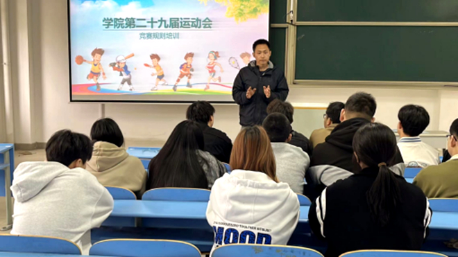 为推进学校第二十九届学生春季运动会顺利开展,进一步提高裁判员及工作人员服务水平,4月25日下午,基础教研室体育学科老师程敏新对裁判员和工作人员进行竞技规则培训及安全培训。