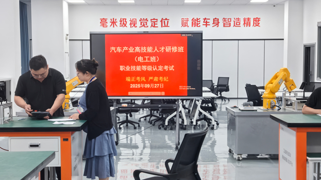 为深入落实人力资源社会保障部、财政部《关于实施“技能照亮前程”培训行动的通知》精神,推进我省汽车产业高技能人才队伍建设,我校2025年9月精心组织开展汽车产业高技能人才研修班(电工班),并同步完成职业技能等级评价工作。目前,研修班各项工作圆满落幕。