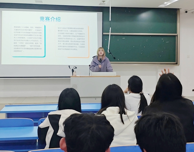 3月31日,车辆运用系举办汽车营销策划校赛暨省赛选拔赛宣讲会,吸引了大一新生到场聆听。