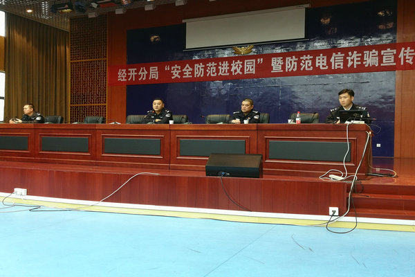 11月6日下午,安环处、党群处、学生处分别派代表前往合肥经开区公安分局参加了经开分局举办的“安全防范进校园”暨防范电信诈骗宣传高校工作人员培训讲座,同时带回合肥市公安局刑警支队提供的宣传手册、宣传海报、宣传条幅。