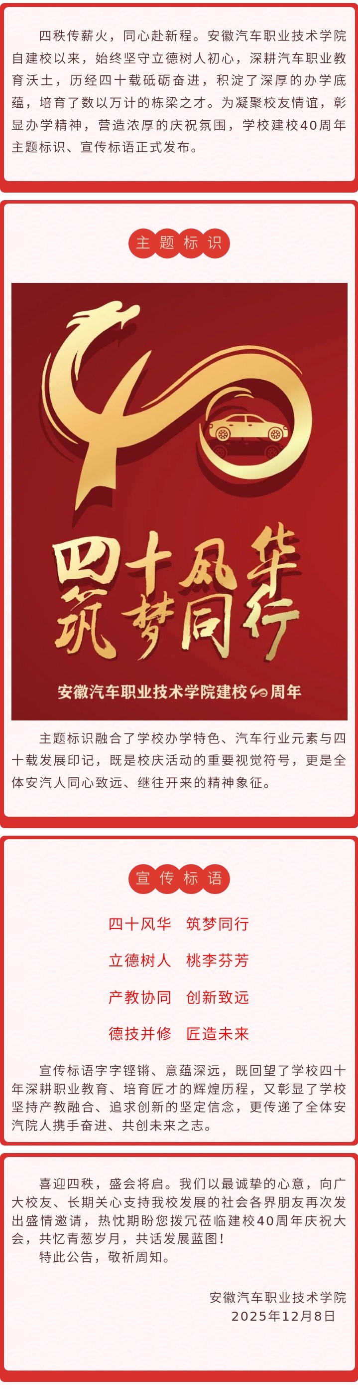 安徽汽车职业技术学院建校40周年校庆公告(第二号)