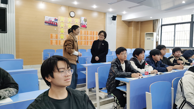 12月10日下午,校党委书记彭桂贞来到思政教研室蒋钱英老师讲授的《思想道德与法治》课程的课堂,实地调研指导思政课教学工作。