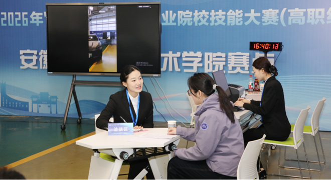 1月29日至31日,由安徽省教育厅、省工信厅、省人社厅、省残联主办,安徽汽车职业技术学院承办的2025-2026年“中银杯”安徽省职业院校技能大赛(高职组)汽车营销赛项在我校紫云校区举办,来自全省29所高职院校的54支队伍108名参赛选手同台竞技。