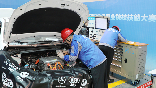 三大赛项紧密对接数字经济背景下汽车营销数字化转型升级新趋势、新能源汽车检测环节人才结构性短缺的现状,以及新能源汽车企业对于纯电动汽车电控系统故障检修专业人才的新需求,设置“综合技能实操”和“现场汇报展示”两个比赛模块,重点考核选手的任务完成质量、实战综合能力及职业素养,为安徽省打造“新能源汽车和智能网联汽车世界级产业集群”、服务长三角一体化发展战略提供坚实可靠、即战力强的高素质技术技能人才支撑。