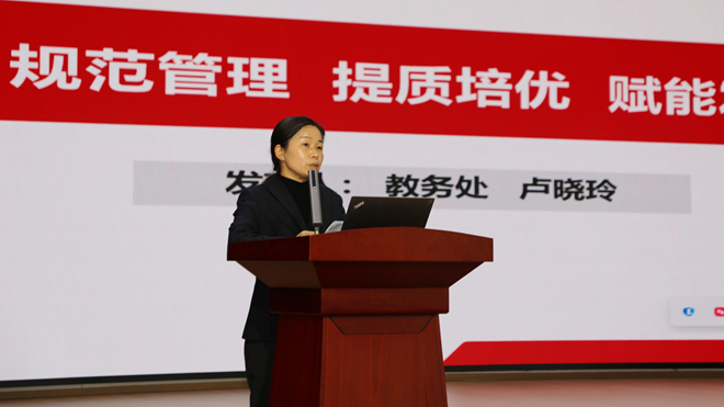 校党委委员、教务处处长卢晓玲作主题为《规范管理 提质培优 赋能发展》的教学工作汇报。